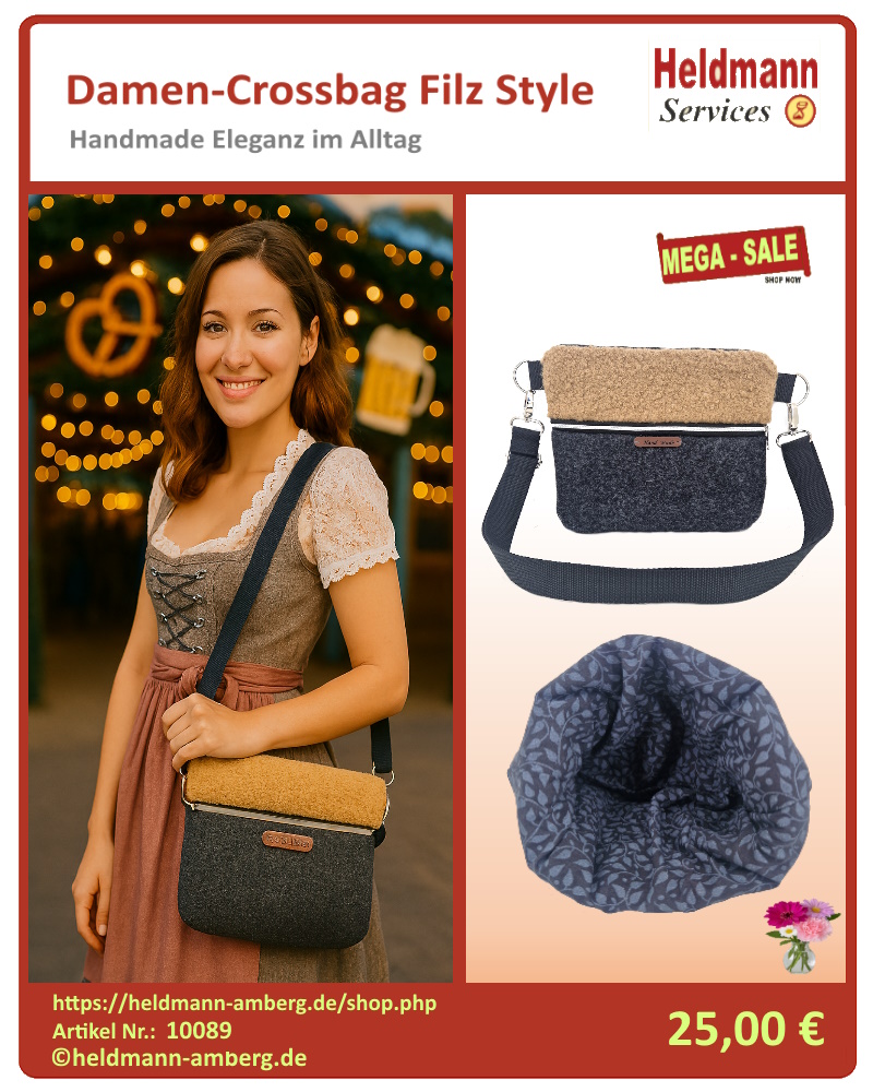 Ob beim Stadtbummel, im Café oder auf Reisen – diese Damen-Crossbag aus Filz ist der perfekte Begleiter für Frauen, die Modebewusstsein mit Alltagstauglichkeit verbinden möchten.